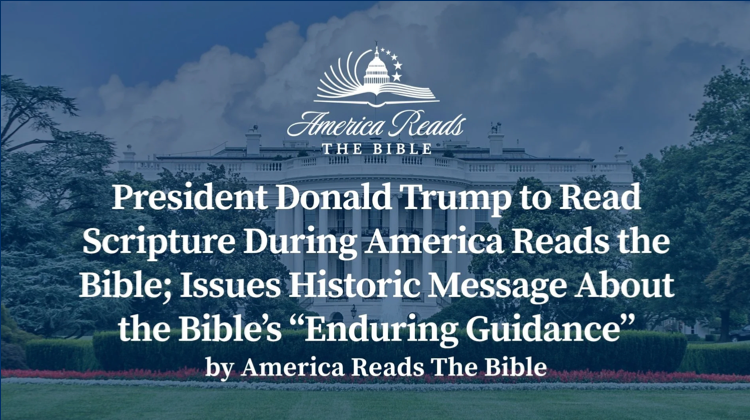 I just went to the “America Reads the Bible” website and the largest letters on the screen say in all caps: “PRESIDENT DONALD J. TRUMP READING.” Yes, tonight this Bible-readathon will feature Trump (prerecorded) reading what God told King Solomon about how to make a nation great: “If My people, who are called by My name, will humble themselves and pray and seek My face and turn from their wicked ways, then I will hear from Heaven, and I will forgive their sin and will heal their land.” (2 Chronicles 7:14)